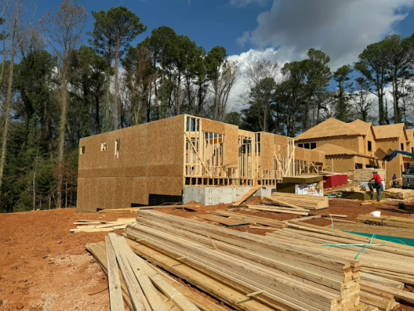 build-out. Roofing and framing finalized on rear homes, setting the stage for interior